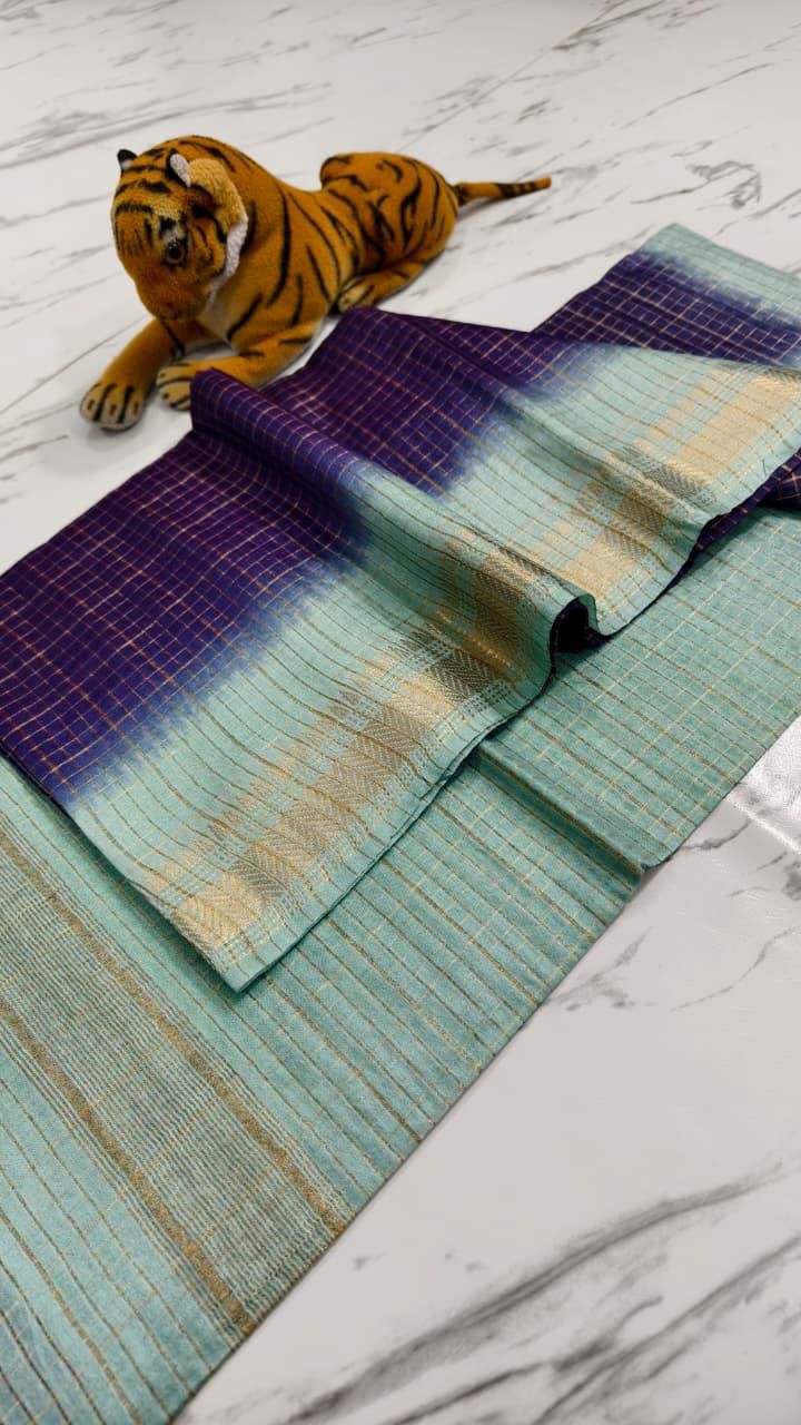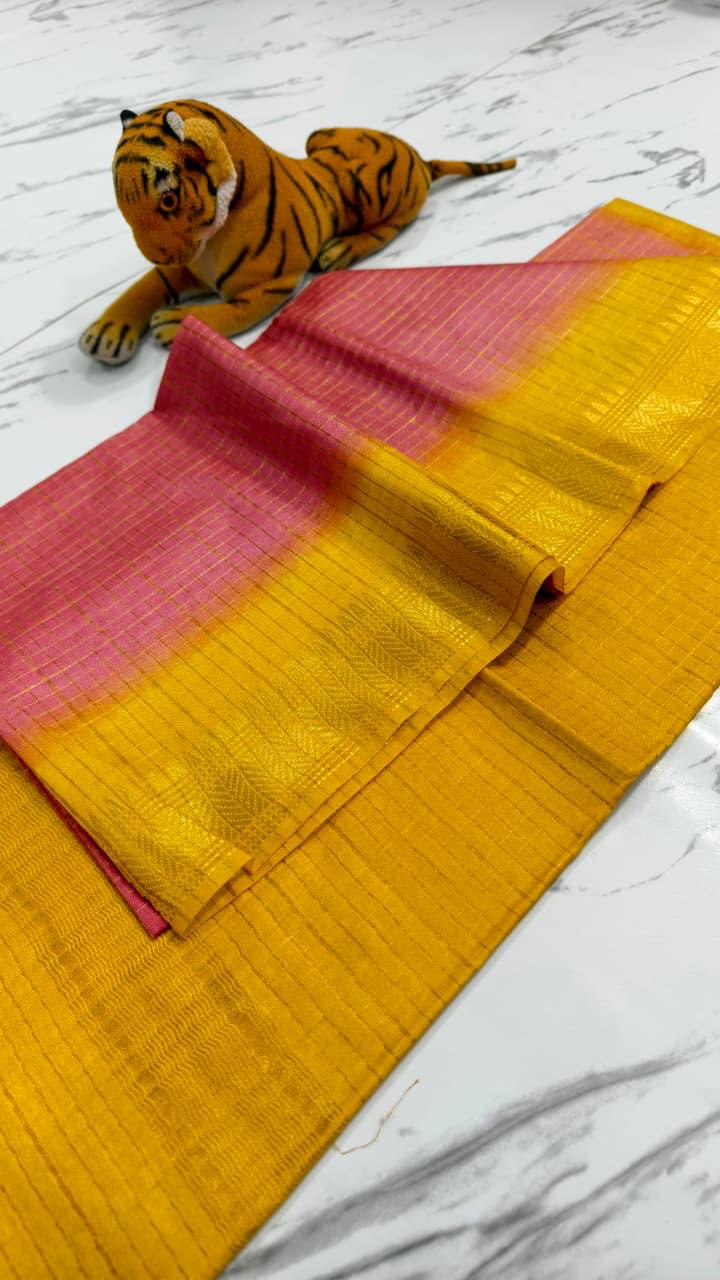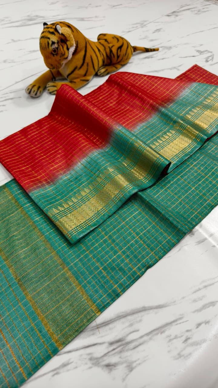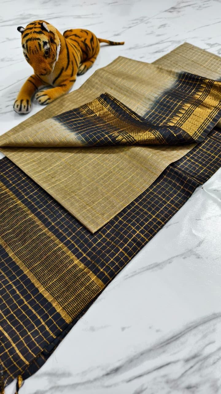 Discover timeless elegance with our premium Mangalagiri Silk Saree, crafted with a rich copper zari temple border and a beautiful full-check body design. Made using soft-quality silk, this saree offers a luxurious drape and a refined traditional look.